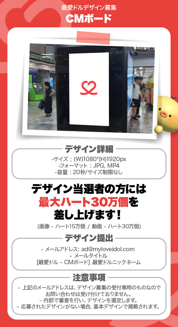 - 無料チャージカムバック&デビューMV掲載(1日)