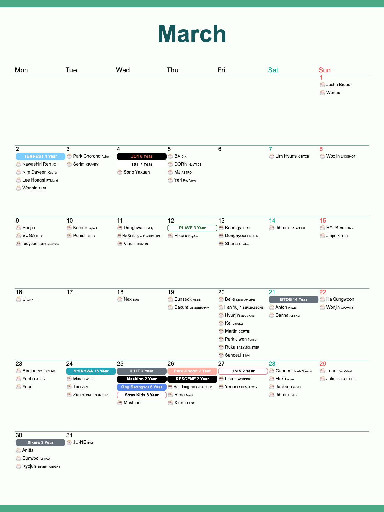 Your go-to calendar for idol birthdays and debut anniversaries —only on CHOEAEDOL!📅